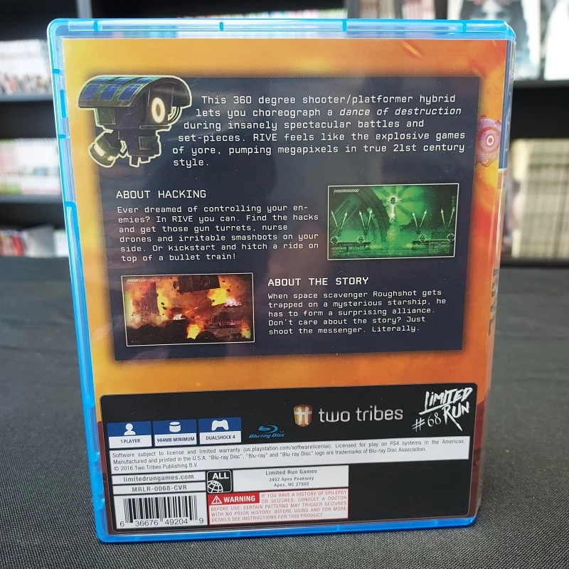 Jeu de tir orienté plateforme sur PS4, Rive vous plonge dans un univers 2D old school mêlant des gameplay différents. Vous devrez apprendre à modifier le comportements des différents robots ennemis en utilisant des hacks.